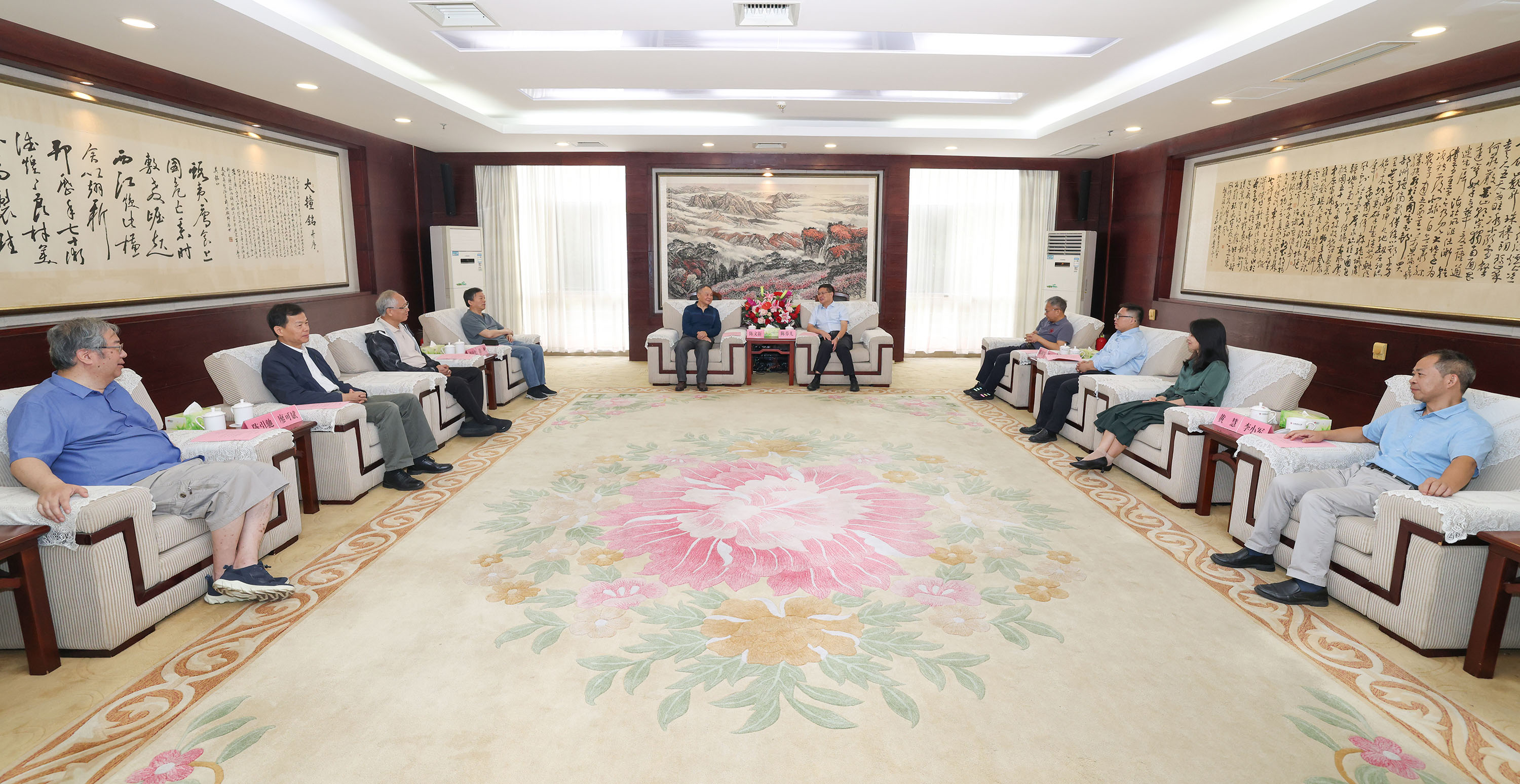 10月17日,学校召开2025年中国古代文学学科发展推进会,邀请武汉大学陈文新教授、华东师范大学谭帆教授、中山大学黄仕忠教授、湖南大学廖可斌教授、复旦大学陈引驰教授等5位学界领军人物为我校中国古代文学学科发展建言献策。校长陈芬儿院士在知行楼第一接待室会见了陈文新教授等专家学者,校党委常委、副校长周利生出席推进会并致辞。