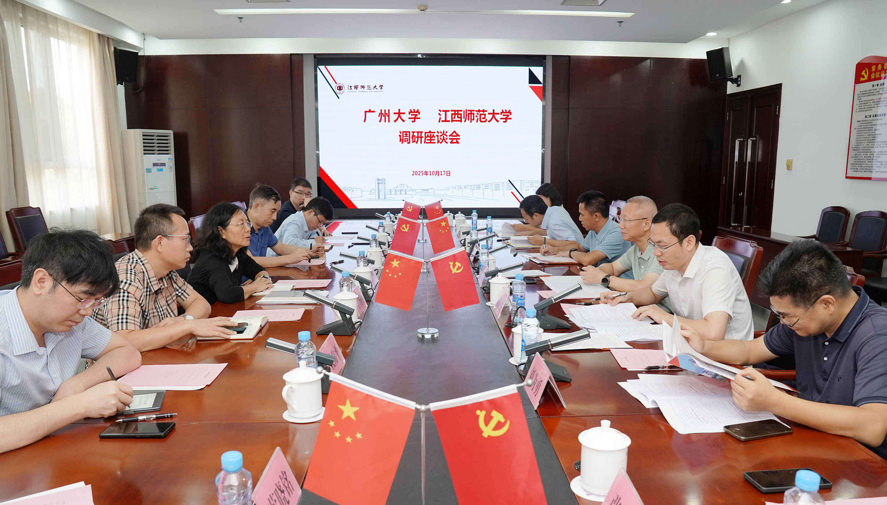 10月17日上午,省纪委监委驻学校纪检监察组组长、校党委常委、纪委书记舒平贵在知行楼第二会议室主持召开座谈交流会,欢迎广州大学党委常委、纪委书记陈晓晖一行来校调研。