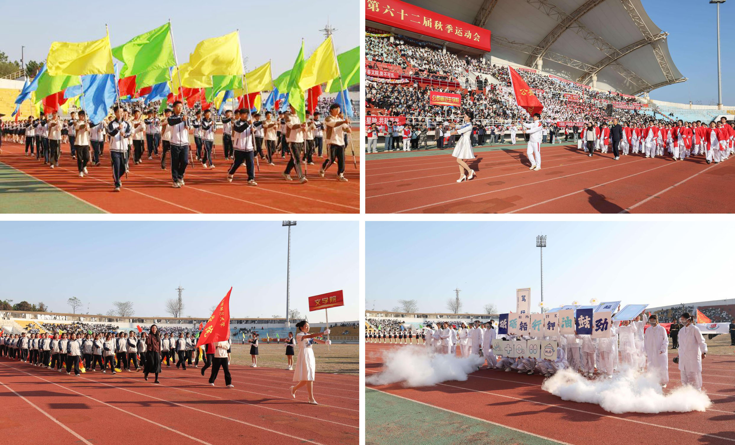 10月23日上午,学校第六十二届秋季运动会在瑶湖体育场开幕。在校学校领导朱小理、舒平贵、钟业喜,校党委常委郭亮亮、王一喜出席。学校各职能部门负责人、校体育工作委员会全体委员、全体运动员,以及学生代表1万余人参加。开幕式由校党委常委、副校长董圣鸿主持。