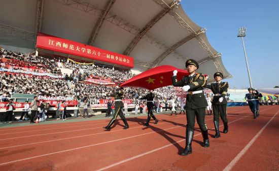 10月23日上午,江西师范大学第六十二届秋季运动会在瑶湖体育场开幕。学校领导朱小理、舒平贵、钟业喜,校党委常委郭亮亮、王一喜出席。学校各职能部门负责人、校体育工作委员会全体委员、全体运动员,以及学生代表1万余人参加。开幕式由该校党委常委、副校长董圣鸿主持。