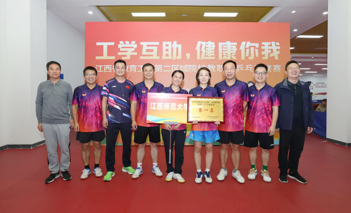 10月25日,由省教育工会主办、我校工会承办的省教育工会第二区域院校教职工乒乓球项目联赛在我校瑶湖校区教师活动中心举行,经过激烈拼搏,我校代表队夺得冠军。校党委常委、副校长董圣鸿到场指导,校党委常委、党委宣传部部长王一喜率队参赛。