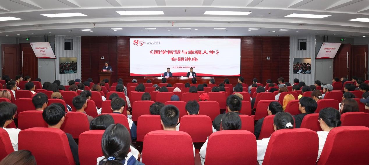 古朴以“国学智慧与幸福人生——基于辩证思维的终极幸福之道”为题,从“人学”视角梳理国学智慧,指出了东西方思维范式的差异,强调幸福并非物质满足,而是一种理解并平衡差异、对立与变化的哲学思辨,为师生们理解国学,探寻幸福带来了新的启发。