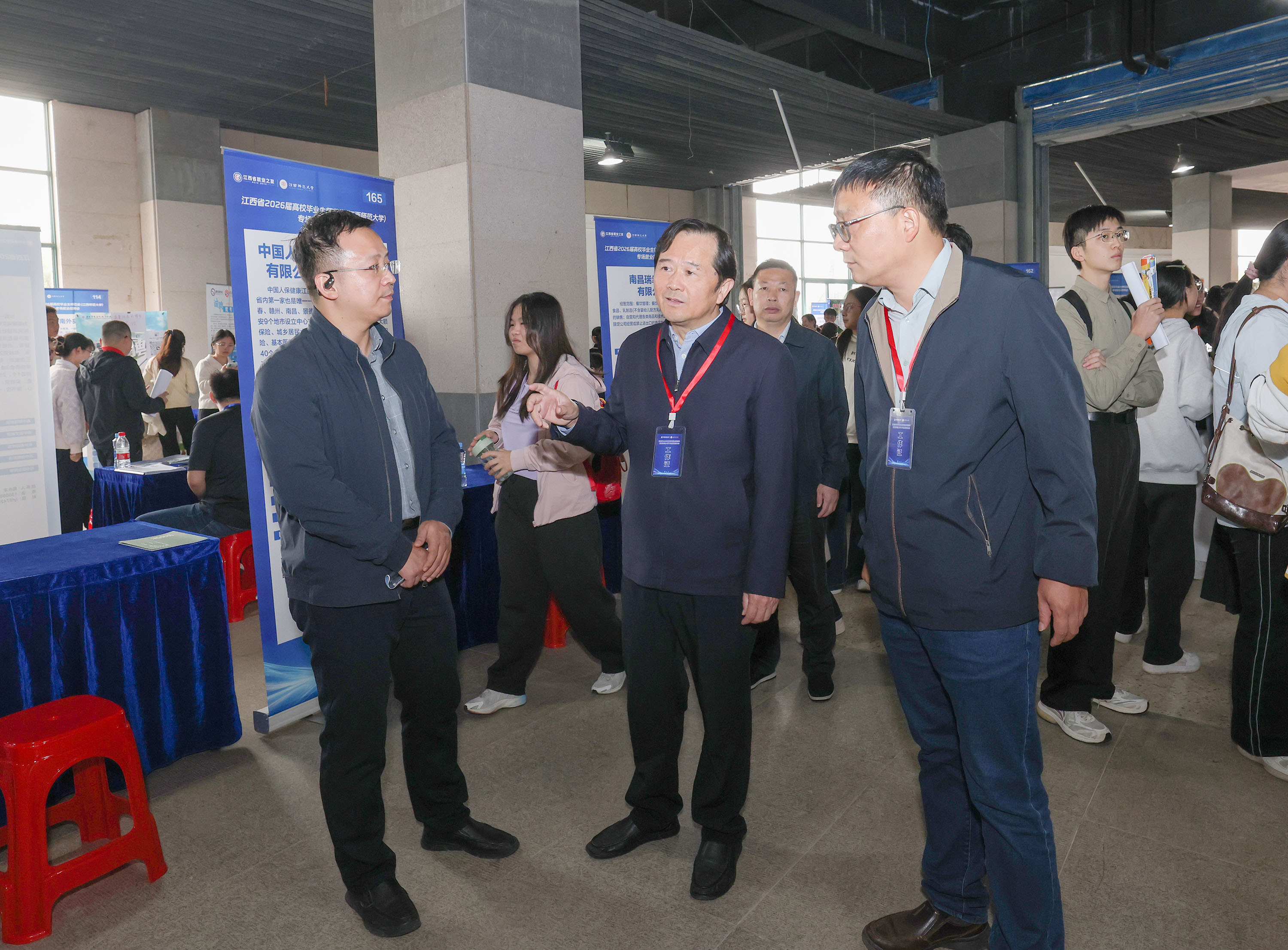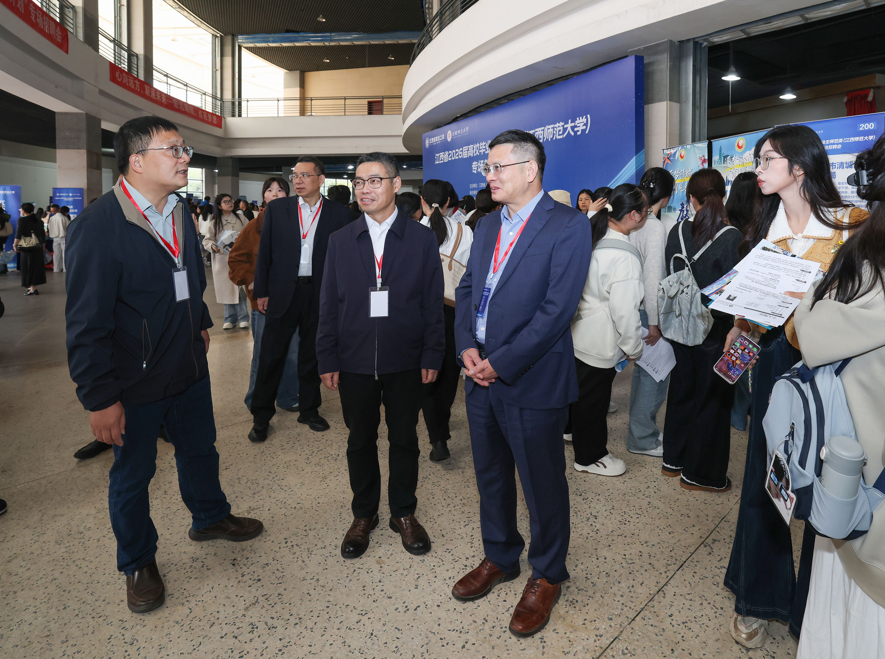 11月1日,江西省2026届高校毕业生师范类(江西师范大学)专场就业招聘会暨江西师范大学2026届毕业生第二场大型招聘会在瑶湖校区举办。校党委书记朱小理,校长陈芬儿院士,江西省就业创业服务中心党委委员、副主任史学义到现场指导。学校相关部门负责人陪同。