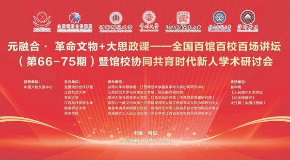 10月27日至29日,“元融合·革命文物+大思政课——全国百馆百校百场讲坛(第66-75期)暨馆校协同共育时代新人学术研讨会”在江西师范大学召开。来自全国23个省、自治区、直辖市革命纪念馆、高校的100多位专家学者参加交流研讨。