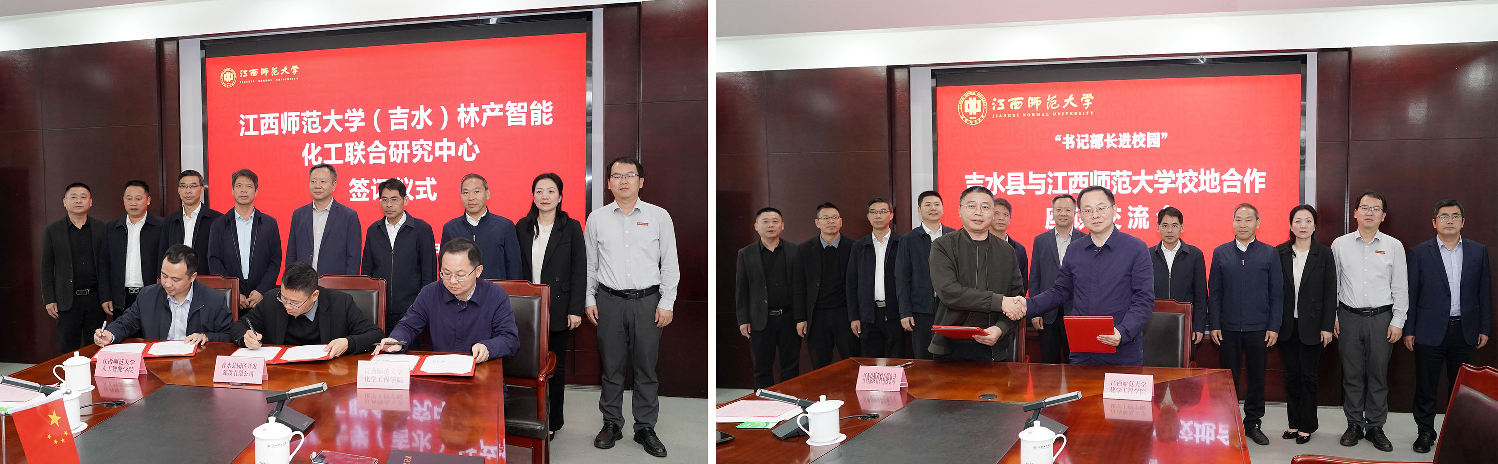 学校与吉水县签订了战略合作框架协议,江西嘉源香料有限公司与学校化学工程学院、人工智能学院签订了“3M3P研发项目”合作协议。