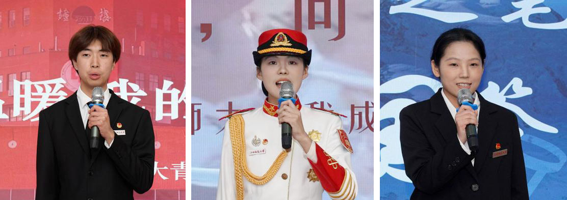 活动现场,美术学院2023级动画专业姚沈浩、马克思主义学院2023级张雨佳和化学与材料学院2022级化学师范专业熊一蕊分别讲述和分享了在专业实践、女大学生军乐团和科研创新方面的成长和收获。文学院学生朗诵团与现场观众一起诵读了同学们自创的现代散文诗《以青春之我,绘盛世家国》,表达了师大学子以青春为笔,以实干为墨,在时代答卷上书写“强国必有我”的责任担当。