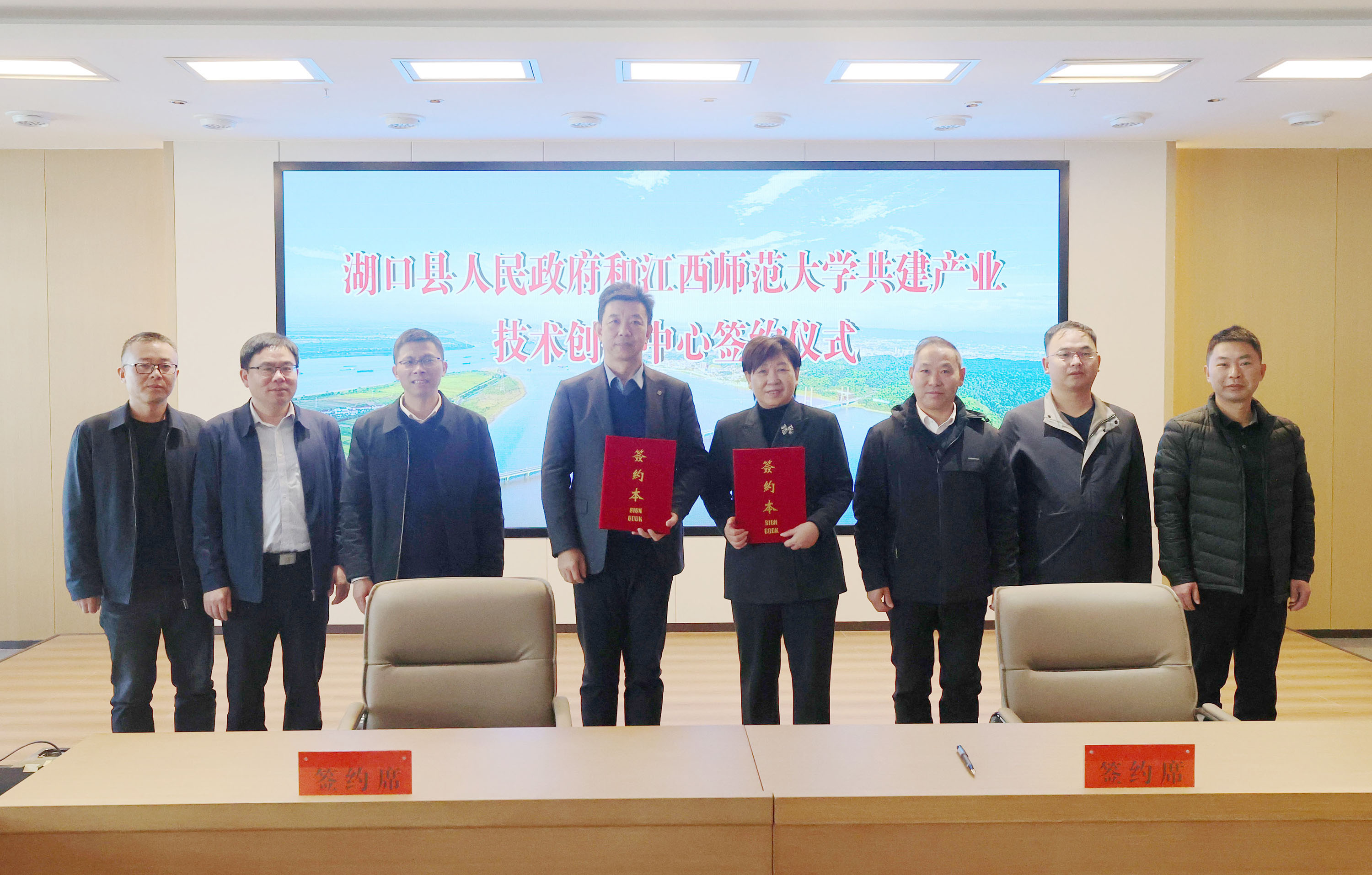11月25日,我校与湖口县人民政府共建产业技术创新中心签约仪式在湖口县工业大厦举行。校党委常委、副校长董圣鸿,学校相关单位负责人、湖口县领导参加。
