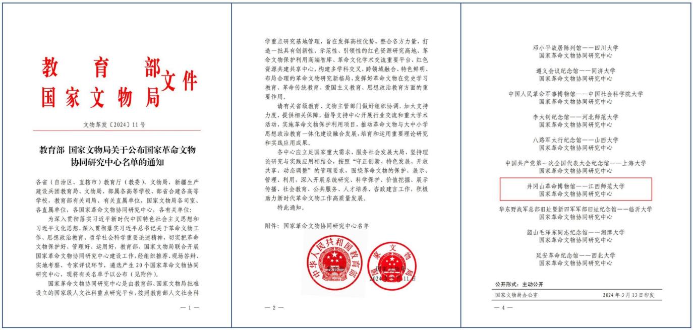 江西师范大学国家革命文物协同研究中心立项批文