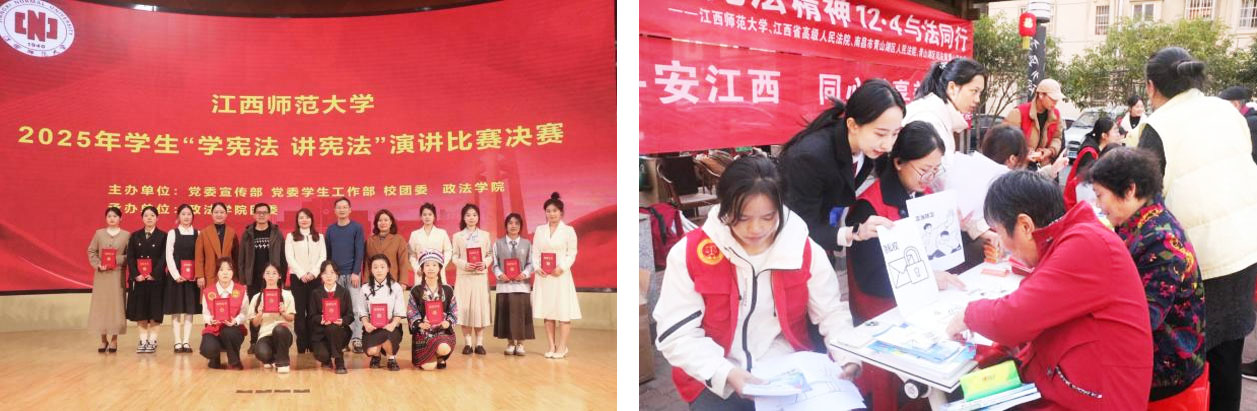 今年12月4日是第十二个国家宪法日,学校开展系列活动强化师生法治教育,先后举办法律知识竞赛、主题演讲、情景剧展演,组织师生走进江西省高级人民法院参观学习和开展模拟庭审等活动,以多元形式普及宪法知识。参与师生纷纷表示,宪法日系列活动有效弘扬了宪法精神,提升了学生的法治素养,加深了大家对宪法原则与精神的理解。