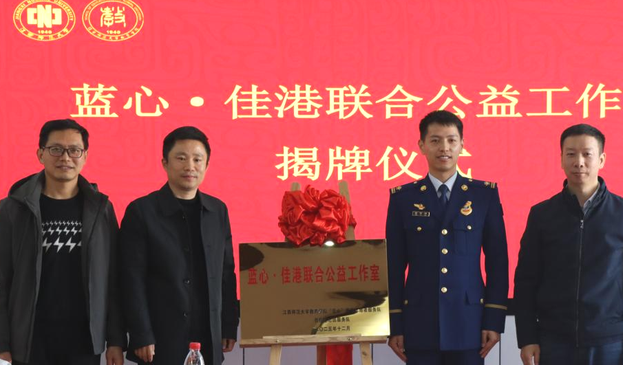 江西师范大学教育学院“蓝心”青年志愿者服务队与张佳港志愿服务队合作签约仪式暨座谈会举行。两支服务队签署合作协议,并共同为“蓝心·佳港联合公益工作室”揭牌。张佳港被聘任为江西师范大学教育学院“蓝心”青年志愿者服务队“荣誉导师”。