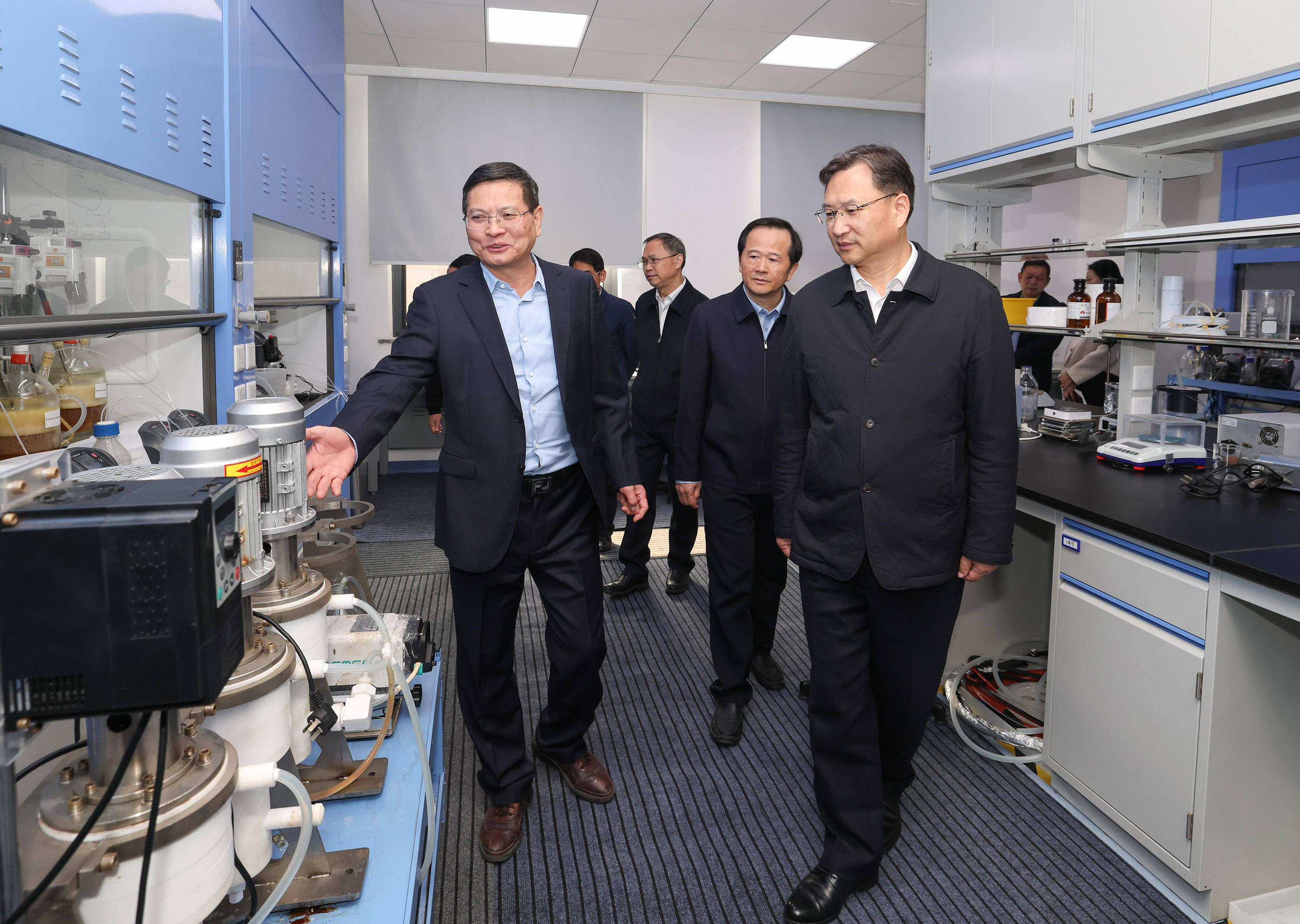 在流动化学与工程研究院,陈芬儿介绍了学校在科研平台建设、科技成果转化等方面的优势与进展,以及流动化学与工程研究院建设情况。他表示,学校始终坚持面向国家战略需求和地方产业发展需要,积极推进产学研深度融合,聚力打造连续流制造特色方向,在药物绿色合成、功能材料制备等领域取得系列突破性成果。他希望进一步发挥高校智力资源与地方产业优势,全面提升科研创新能力和社会服务能力,为服务地方经济发展贡献高校智慧。