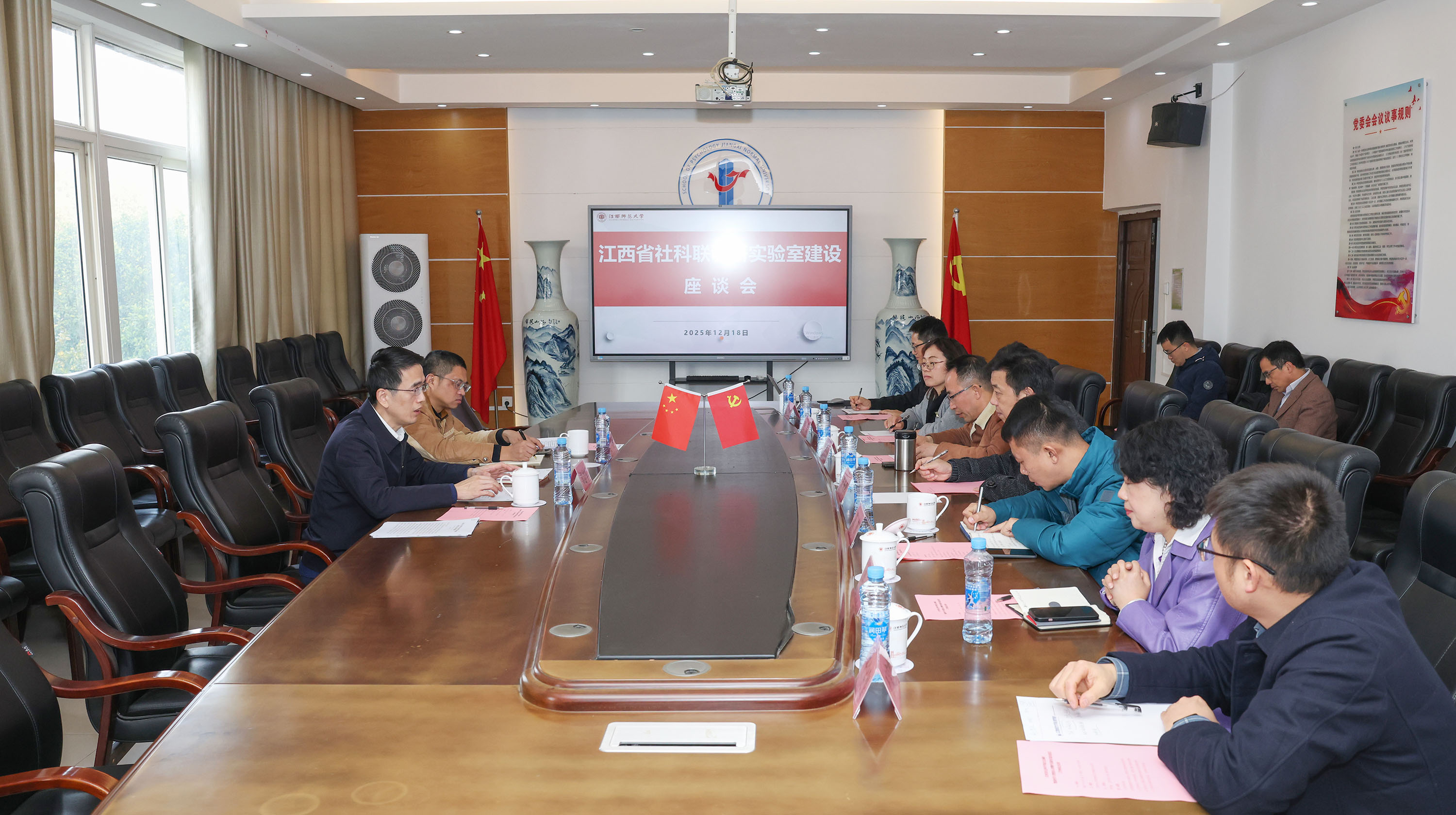 12月18日下午,省社会科学界联合会党组书记、主席郑志军一行来校调研,实地考察江西省哲学社会科学实验室“数据科学与智能化心理测评及服务实验室”,详细了解平台建设、技术研发与社会服务开展情况。校党委书记朱小理,校党委常委、副校长董圣鸿陪同调研并在心理学院会议室召开座谈会,学校相关职能部门负责人、学院教师代表参加。