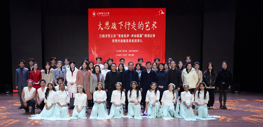 12月18日,大思政下行走的艺术——江西师范大学“青春筑梦·声动赣鄱”朗诵比赛优秀作品展演暨颁奖典礼在瑶湖校区实验剧场举行。校党委常委、副校长钟业喜出席,相关职能部门负责人、各学院师生代表及获奖选手参加。
