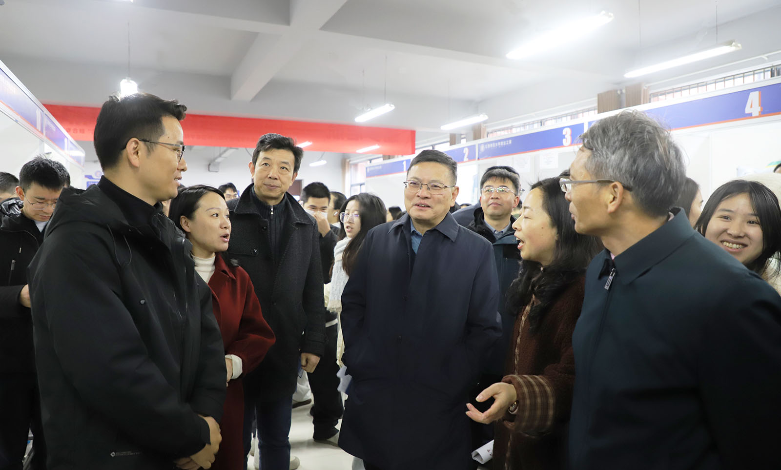 12月25日,教育学院、外国语学院、文学院、新闻与传播学院联合举办专场招聘会。校长陈芬儿院士到场指导,校党委常委、副校长董圣鸿参加,学校相关部门、学院负责人,毕业班辅导员以及千余名2026届毕业生参加。