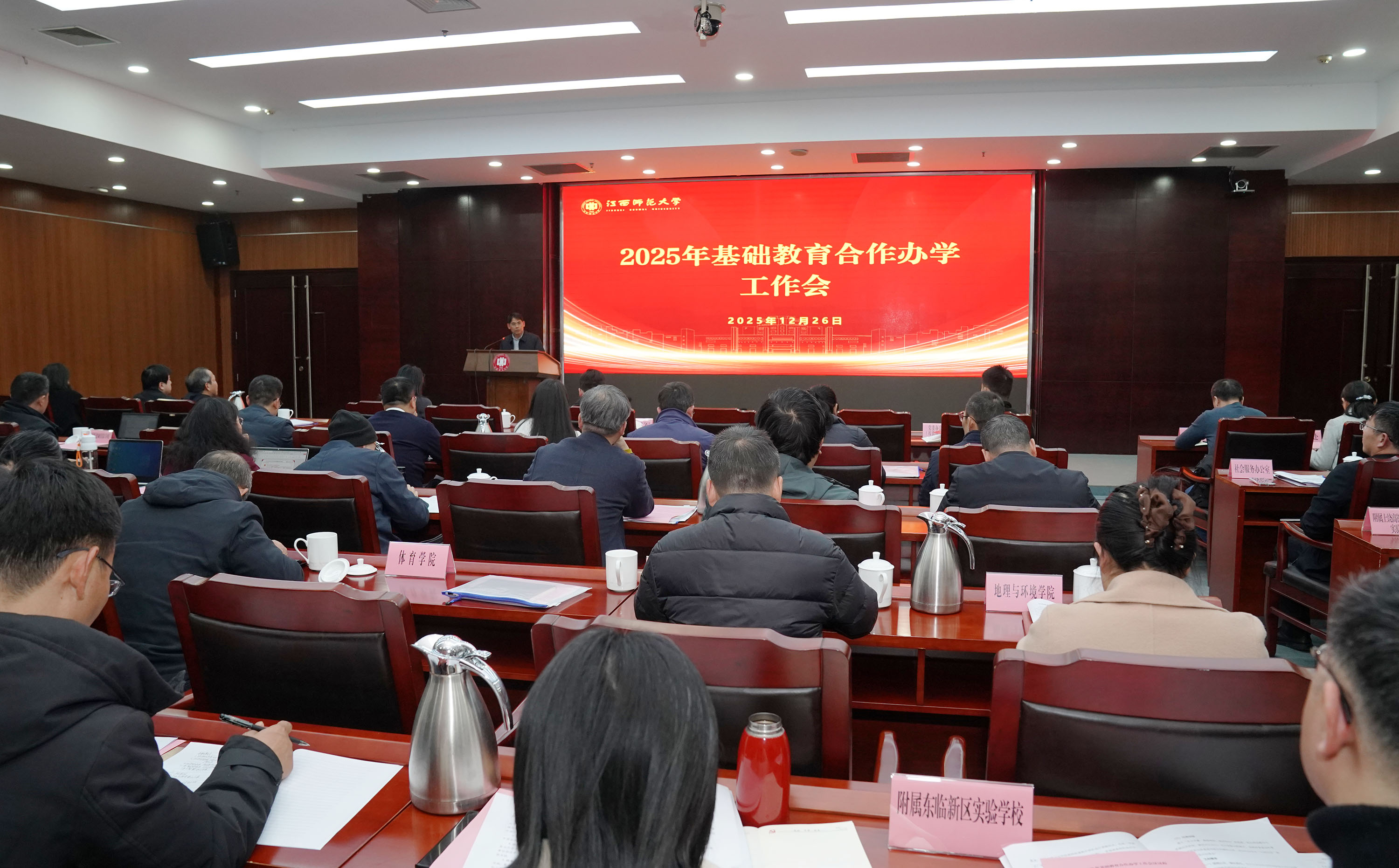 12月26日下午,学校在知行楼第二报告厅召开2025年基础教育合作办学工作会议。校党委常委、副校长刘利民出席会议并讲话。校党委常委、副校长杨卫军主持。学校相关职能部门、学院负责人,各附属学校、合作学校校长及教师代表等参加,并共同参观了学校基础教育合作校风采展。