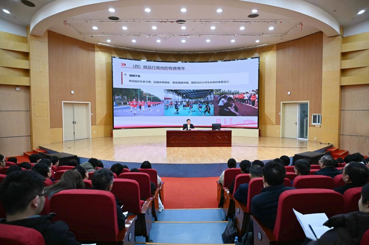 1月5日,省长叶建春在我校作形势与政策报告。他与师生一道回顾“十四五”期间的辉煌发展成就、分析“十五五”期间的广阔发展空间,勉励青年学生牢记习近平总书记殷殷嘱托,不负青春韶华,把握时代机遇,争做有理想、敢担当、能吃苦、肯奋斗的新时代好青年,在推进强国建设、民族复兴伟业中奏响璀璨的青春华章。