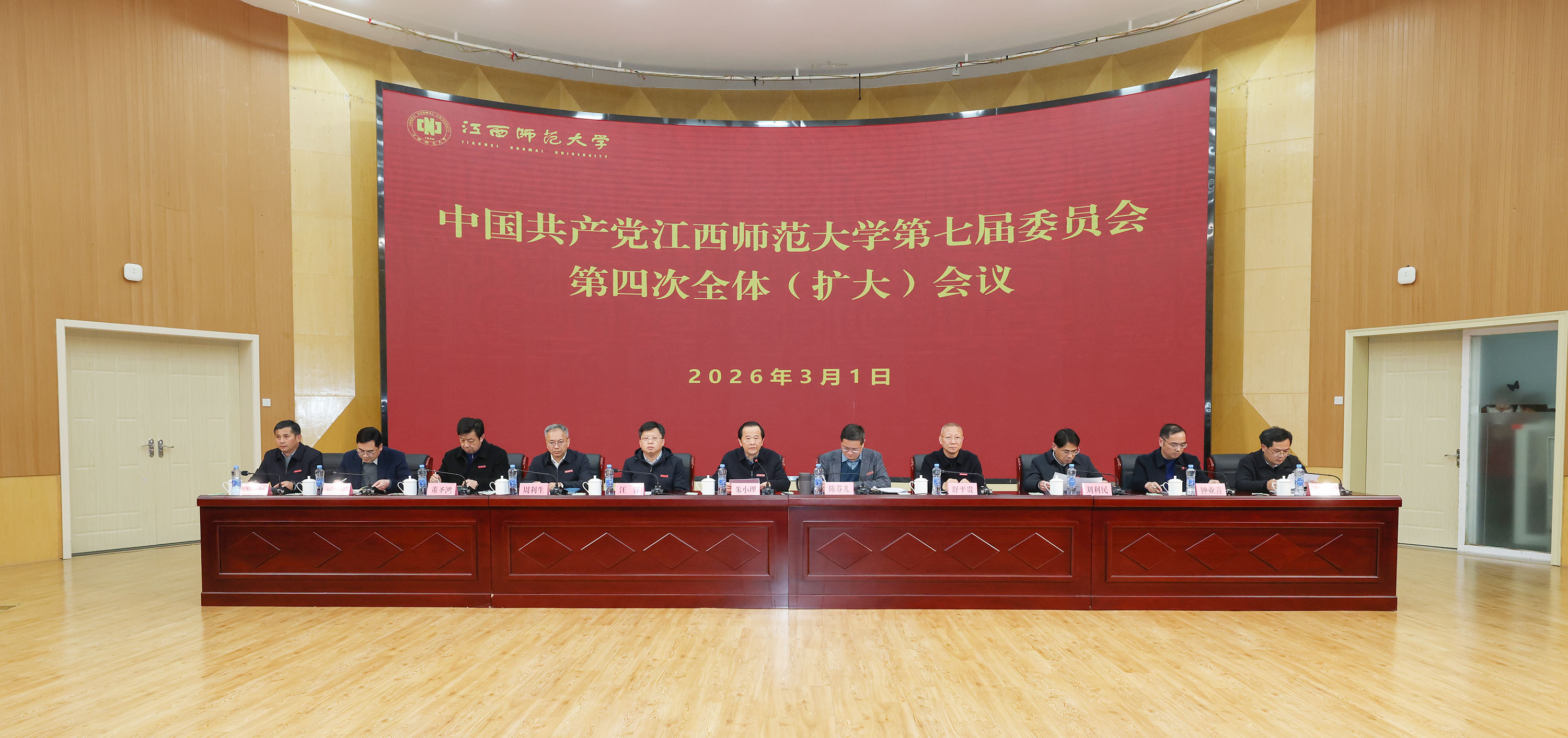 2月27日至3月1日,中国共产党江西师范大学第七届委员会第四次全体(扩大)会议在音乐艺术广场报告厅召开,进一步统一全校思想、凝聚发展共识、提振干事精神。校党委书记朱小理主持会议,学校第七届党委委员出席会议,非党委委员的校领导班子成员,全校各单位、各部门主要负责人,全校副处级以上领导干部列席会议。