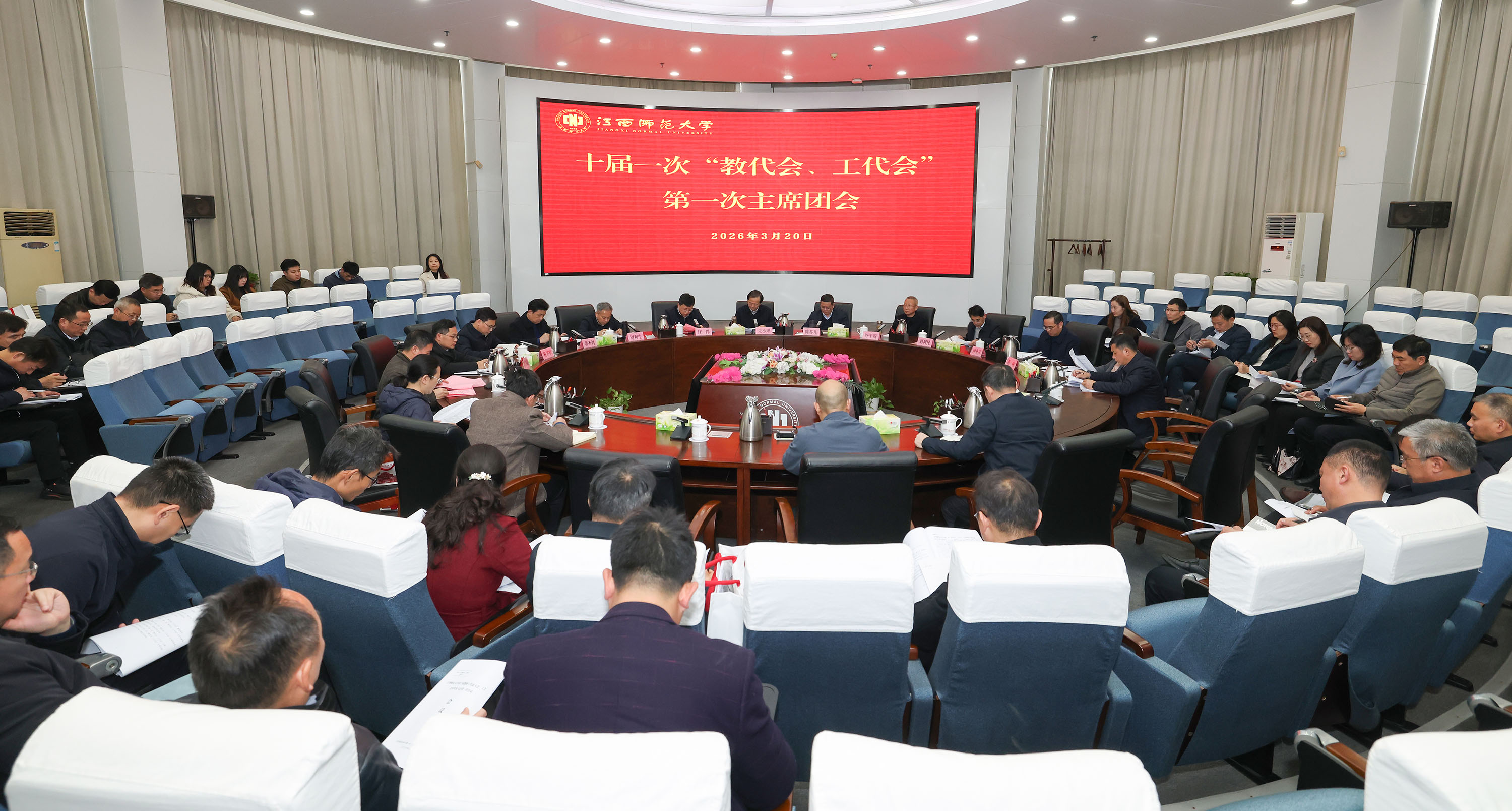 在十届一次“教代会、工代会”第一次主席团会议上,审议并通过《江西师范大学十届一次“教代会、工代会”选举办法(草案)》,大会选举总监票人、监票人、总计票人、计票人建议名单及提交大会选举的候选人建议名单。