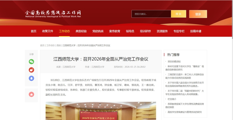 【全国高校思想政治工作网】江西师范大学:召开2026年全面从严治党工作会议