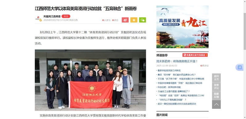 【凤凰网】江西师范大学以体育美育浸润行动绘就“五育融合”新画卷