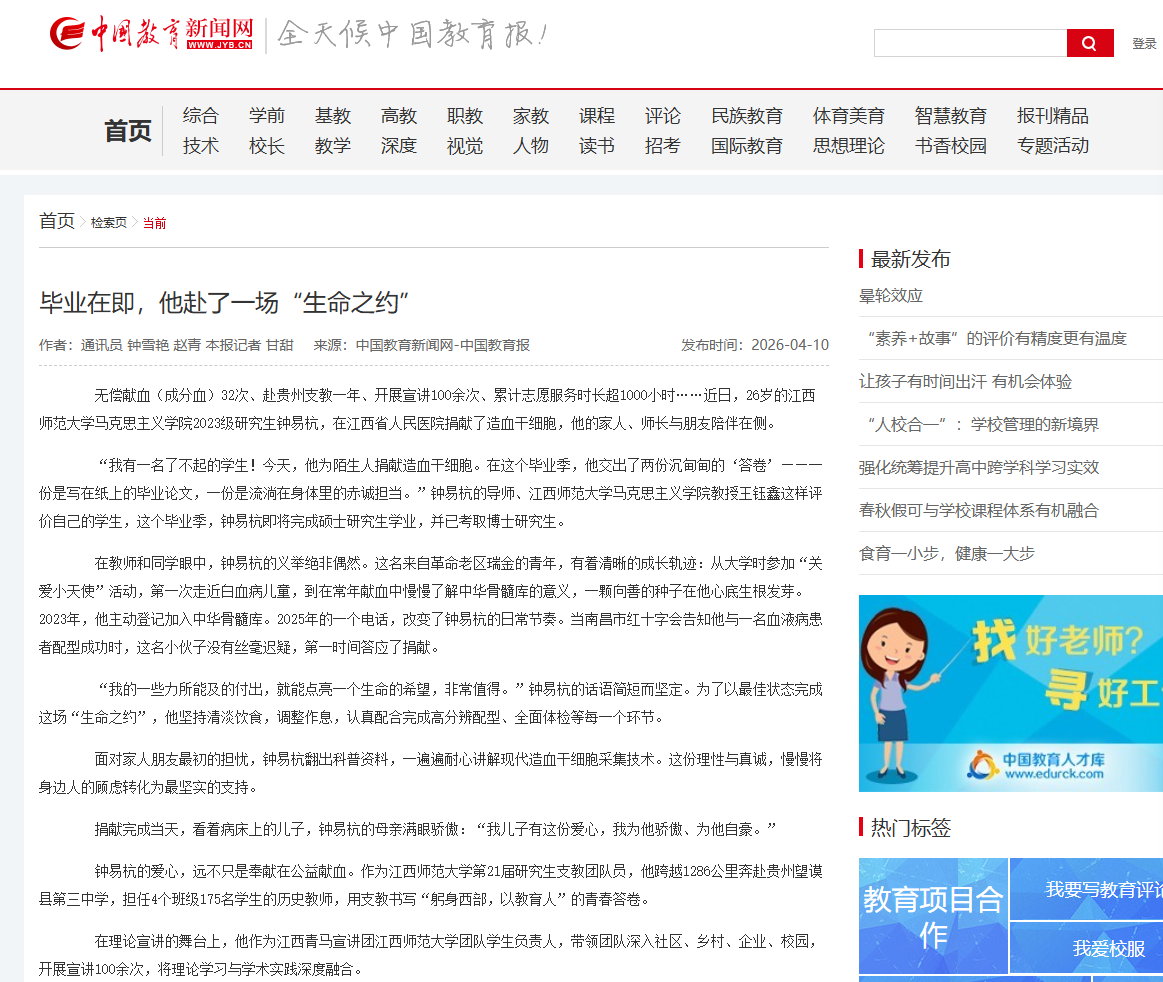 【中国教育新闻网】毕业在即,他赴了一场“生命之约”