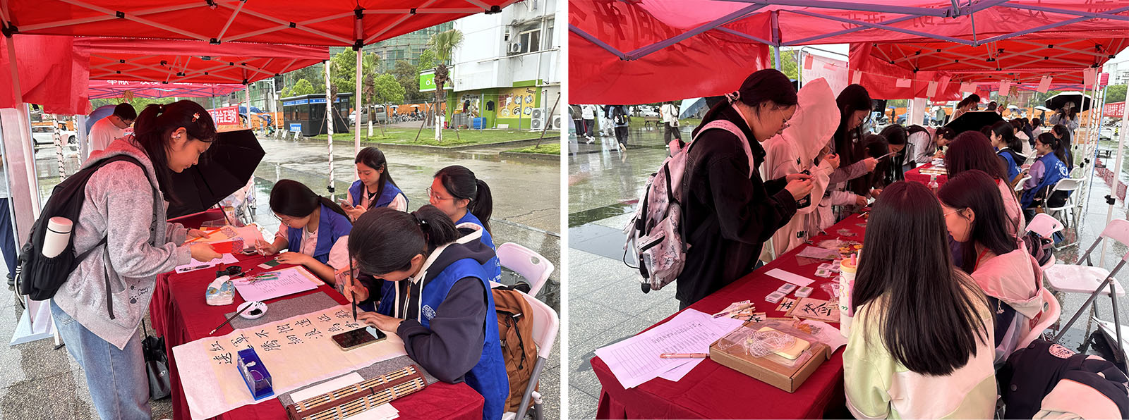 启动仪式后,一场涵盖了朗诵表演、敦煌舞和民乐表演的“谷雨诗会”在春光中展开;现场还设有“汉字侦探”“诗词达人”,制作书签和绘制扇面四大互动体验区,吸引师生们驻足参与。