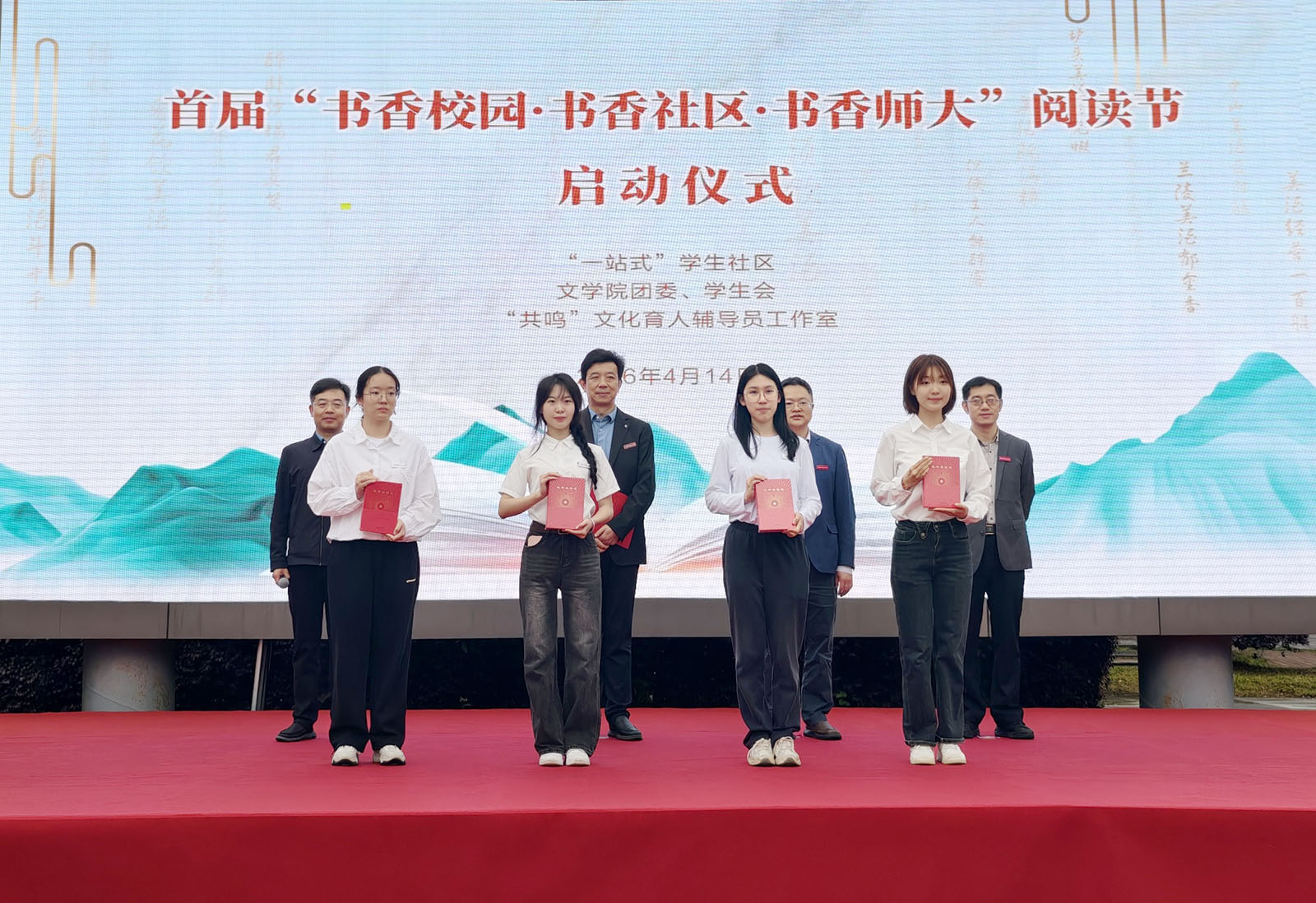 春光恰与书为伴,正是阅读好时节。4月14日下午,由“一站式”学生社区、文学院及“共鸣”文化育人辅导员工作室共同主办的首届“书香校园·书香社区·书香师大”阅读节启动仪式在瑶湖校区青年文化广场举行。校党委常委、副校长董圣鸿出席并致辞。学校相关部门负责人、辅导员和学生代表共350余人齐聚现场,共赴一场书香之约。