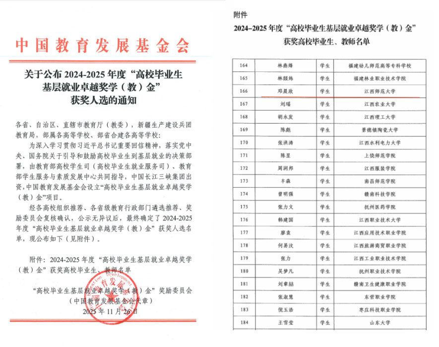 • 我校毕业生获“高校毕业生基层就业卓越奖学(教)金”